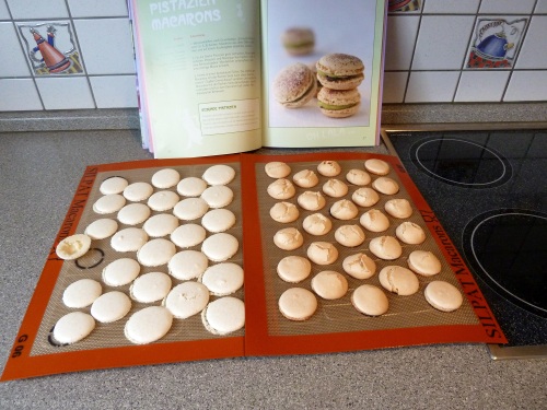 Im Buch gibt es ein Rezept für „schnelle Macarons“ mit Pistazienfüllung, dass hat mich natürlich neugierig gemacht und ich habe es gleich mal getestet.