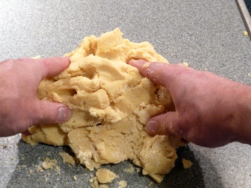 - Knete den Teig auf der Arbeitsfläche richtig durch.