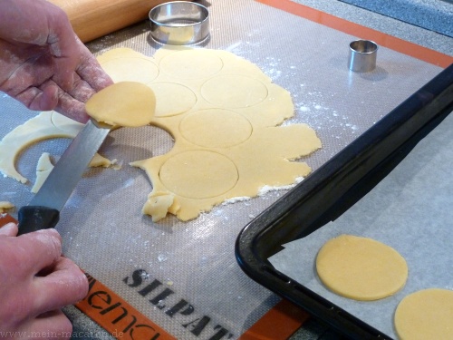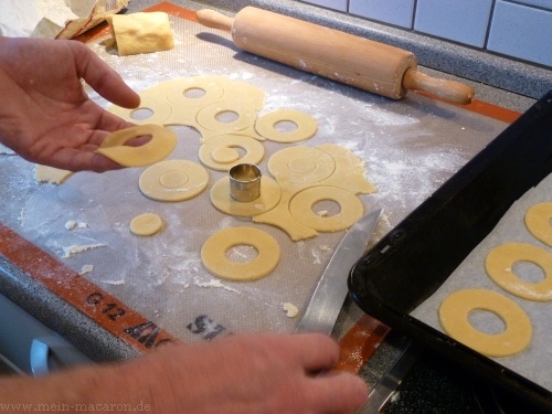 - Rolle den Teig 3-4 mm stark aus und steche Kreise aus, Ø 7 cm.