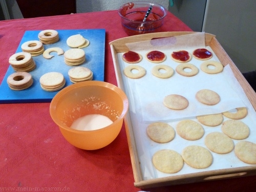 Jetzt müssen sie nur noch mit der Erdbeermarmelade gefüllt werden.