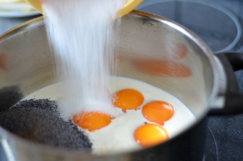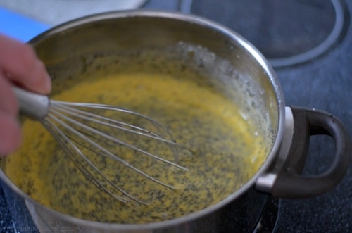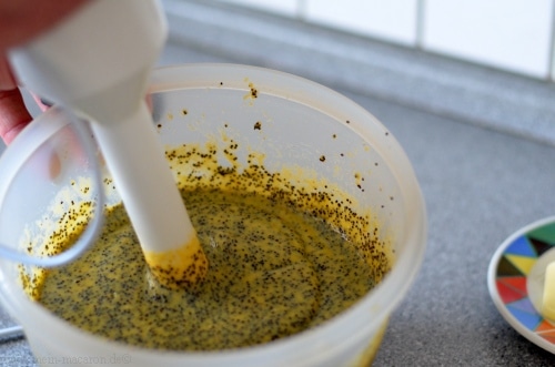 Bevor du dich also auf die Macarons stürzt, stelle dir zunächst die Mohncreme her, denn sie sollte über Nacht im Kühlschrank stehen um die richtige Konsistenz zu bekommen.