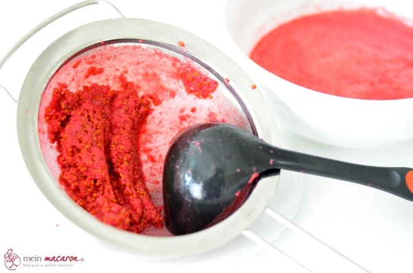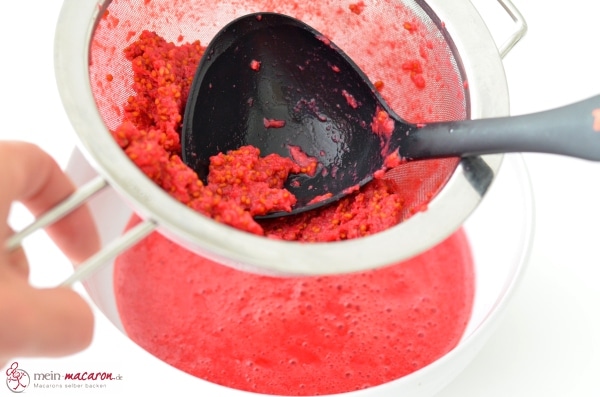 Streiche das Johannisbeer-Püree durch ein Sieb.