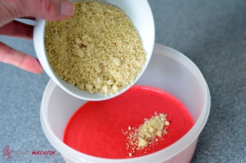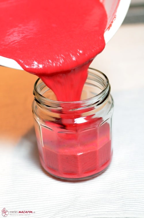 Für unbemalte Macarons färbe sie einfach mit etwas roter Lebensmittelfarbe