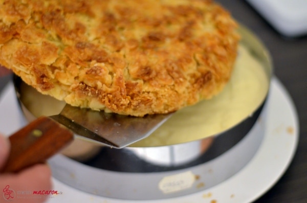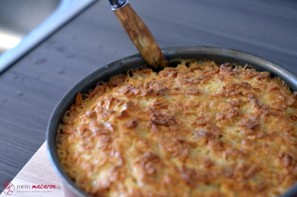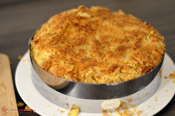 Fahre nach dem Backen gleich mit einem Messer am Rand entlang um die Mandeldecke zu lösen.