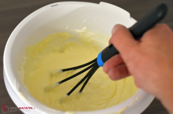Hebe ihn vorsichtig mit einem Schneebesen unter, bis du eine cremige Masse hast. |  |