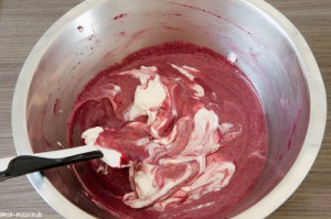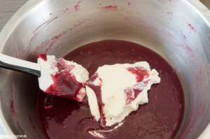 Hebe eine Hälfte der Sahne unter die abgekühlte Brombeermasse, um sie aufzulockern. |  |