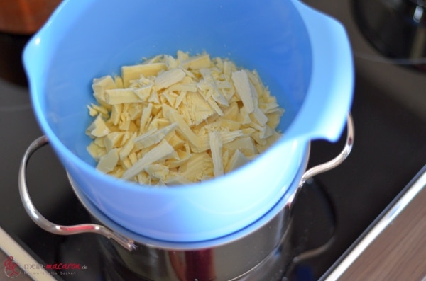 Löse die Kuvertüre in einer Schüssel über dem heißen Wasserbad auf. |  |