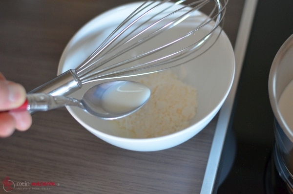 Gib die Mandelmilch in den Topf und koche sie unter rühren auf. |  |