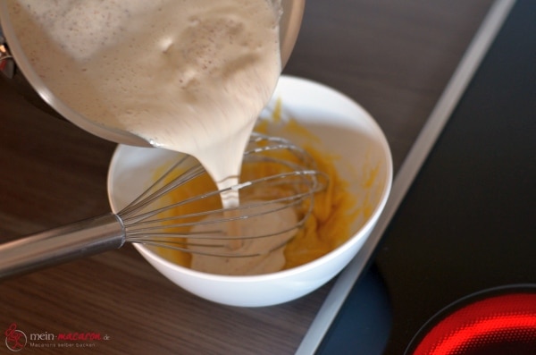 Schütte die heiße Mandelmilch über die angerührte Puddingpulver-Zucker-Mandelmuß-Mischung, rühre sogleich kräftig durch... |  |