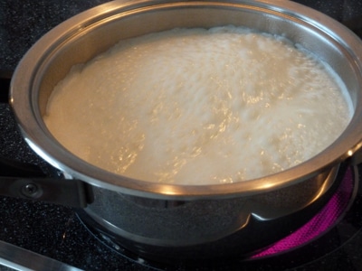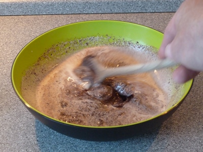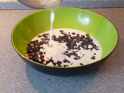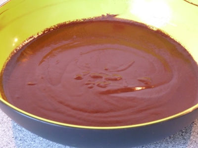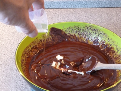 Rezept und Anleitung für eine kräftige Ganache aus Zartbitterkuvertüre mit Minzöl aromatisiert.