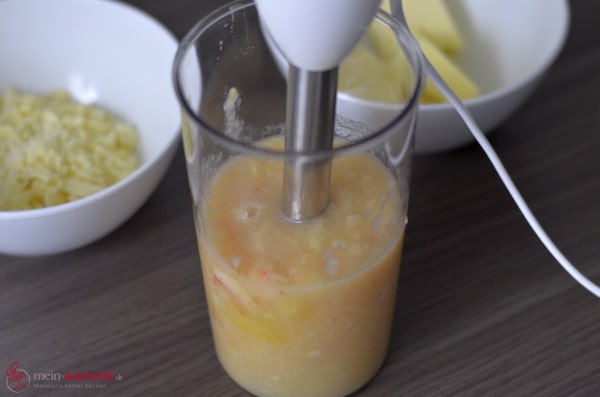 ... arbeite sie mit dem Mixstab ein, bis du eine glatte, cremige Masse hast.