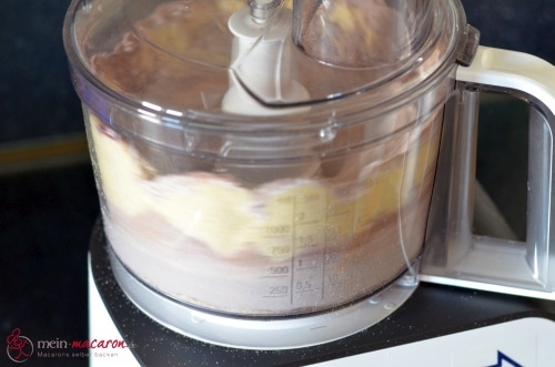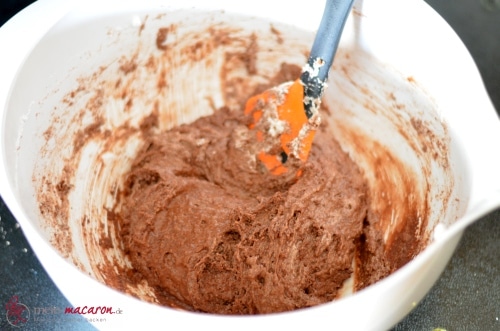 hier habe ich das Rezept der Macarons verwendet. Da ich keinen Blitzhacker habe, habe ich die Mandel/Zucker/Kakaomasse mehrere Male (!!) gemahlen. Einmal reicht bei weitem nicht aus.