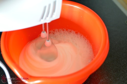 Wichtig ist das die Mandeln und der Puderzucker schon gut gemischt sind und ohne Klümpchen, bevor du das Eiweiß unterhebst.