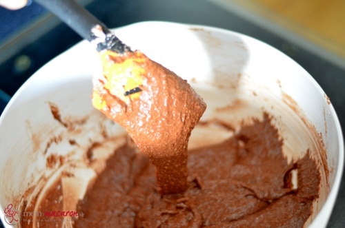 Hebe sie mit dem Handmixer unter, bis sie gleichmäßig verteilt sind.