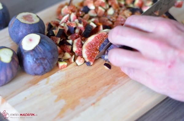 Stell dir zunächst die Feigenmarmelade her, sie braucht ihre Zeit zum Abkühlen und fest werden.